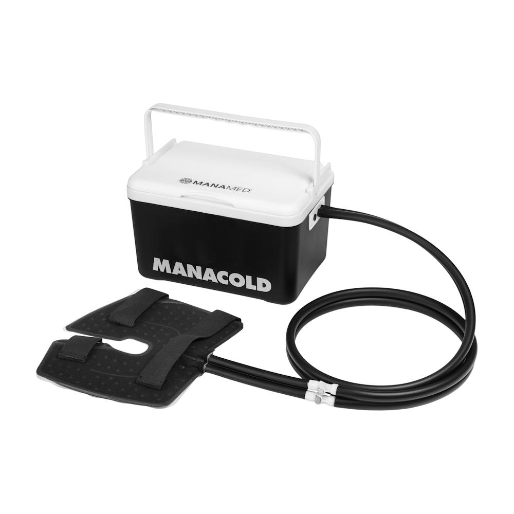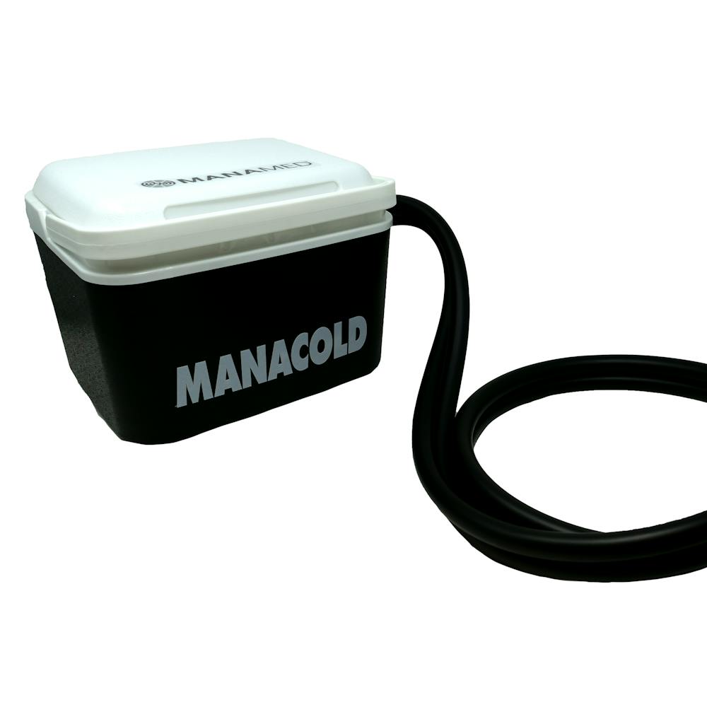 The ManaCold Platinum Universal Combo Unit is a water-circulating therapy device used to decrease pain, swelling, and muscle spasms after surgery or injury. When the cold therapy pad is applied to the patient's injured area, delivering continuous cold therapy through the tubing and into the cold pad, it creates an easy solution for your patients without a large mess.
