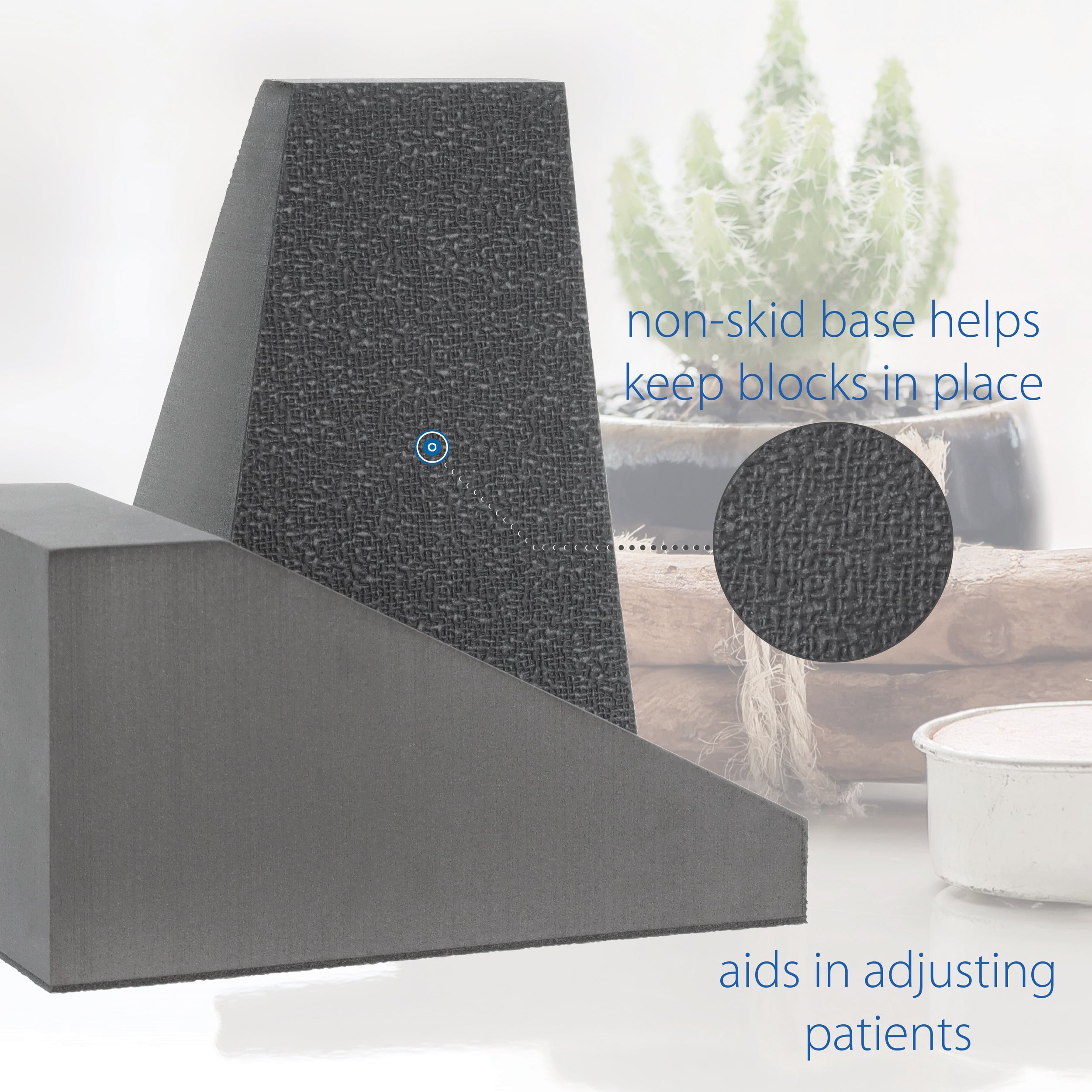 Constructed of extra firm closed cell foam that is lightweight, durable, and odorless. The Pelvic Sacral Blocks provide a firm and supportive foundation that is strong and resilient, maintaining their shape for years of use and support. The textured non-skid material on the base of the blocks helps prevent slipping, and keeps the blocks in place during use.