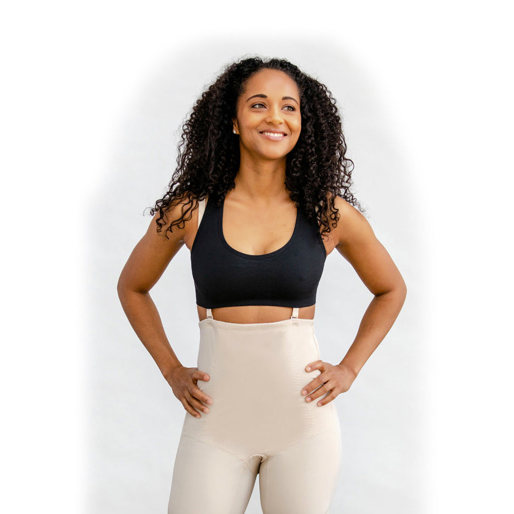 Designed by medical professionals to help recovery after birth. Speeds up postpartum recovery time. Delivers gentle compression to reduce swelling (edema). Stabilizes the abdomen with gently supportive panels. Relieves conditions like pelvic girdle pain. Supports lower back and hips for improved posture. Tightens and tones belly, hips, waist, pelvis, and lower back. Discreet and seamless under clothing. Made with lightweight and breathable Micro Net fabric. A snug and secure fit without being uncomfortably tight. Split crotch design for convenient trips to the restroom. Contains silicone leg grippers to prevent the garment from riding up. No zipping or buttoning; easy to step into and adjust straps. Nude color. 76% nylon, 24% spandex. FDA listed Medical Device. XS: Waist: 25–26 in., Hips: 35–36 in., Pre-Preg Pant: 0. S: Waist: 27–29 in., Hips: 37–39 in., Pre-Preg Pant: 2–4. M: Waist: 30–32 in., Hips: 40–42 in., Pre-Preg Pant: 6–8. L: Waist: 33–35 in., Hips: 43–45 in., Pre-Preg Pant: 10–12. XL: Waist: 36–39 in., Hips: 46–49 in., Pre-Preg Pant: 14. 2X: Waist: 40–43 in., Hips: 50–53 in., Pre-Preg Pant: 16–18.
