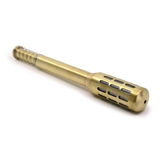 Largest available push spring style rolling moxa heating device. Easy to use, designed to treat, warm, and massage larger more expansive areas of the body. The burning moxa stick warms the brass rolling head. The Extra Large Rolling Lion Warmer is 11.5" long with a diameter of 1 5/8". Cleaning device included.