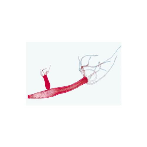 School Set A for General Biology in Italian language, Elementary Set 25 microscope slides - Zoology - Amoeba proteus, w.m. showing nucleus and pseudopodia - Hydra, w.m. extended specimen to show foot, body, mouth, and tentacles - Lumbricus, earthworm, typical t.s. back of clitellum showing muscular wall, intestine, typhlosole, nephridia etc. - Daphnia and Cyclops, small crustaceans from fresh water - Musca domestica, house fly, head and mouth parts (proboscis) w.m. - Musca domestica, leg with clinging pads (pulvilli) - Apis mellifica, honey bee, anterior and posterior wing - Histology of Man and Mammals - Squamous epithelium, isolated cells from human mouth - Striated muscle, l.s. showing nuclei and striations - Compact bone, t.s. special stained for cells, lamellae, and canaliculi - Human scalp, vertical section showing l.s. of hair follicles, sebaceous glands, epidermis - Human blood smear, stained for red and white corpuscles - Botany, Bacteria and Cryptogams - Bacteria from mouth, smear Gram stained showing bacilli, cocci, spirilli, spirochaetes - Diatoms, strewn slide of mixed species - Spirogyra, vegetative filaments with spiral chloroplasts - Mucor or Rhizopus, mold, w.m. of mycelium and sporangia - Moss stem with leaves w.m. - Botany, Phanerogams - Ranunculus, buttercup, typical dicot root t.s., central stele - Zea mays, corn, monocot stem with scattered bundles t.s. - Helianthus, sunflower, typical herbaceous dicot stem t.s. - Syringa, lilac, leaf t.s. showing epidermis, palisade parenchyma, spongy parenchyma, vascular bundles - Lilium, lily, anthers with pollen grains and pollen sacs t.s. - Lilium, ovary t.s. showing arrangement of ovules - Allium cepa, onion, w.m. of epidermis shows simple plant cells with cell walls, nuclei, and cytoplasm - Allium cepa, l.s. of root tips showing cell divisions (mitosis) in all stages, carefully stained 0.0 x 0.0 x 0.0 in