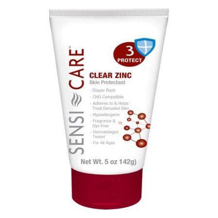 Sensi-Care® Clear Zinc diaper rash skin protectant goes on clear to allow for a visual inspection of the skin 5% dimethicone provides a protective barrier that repels moisture 5% zinc oxide protects irritated skin associated with diaper rash conditions Hypoallergenic CHG compatible For all ages