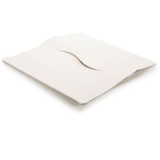 Headrest squares measure 12" x 12" with opening for face sheet. Used for treatment table headrests or pillows, these come 1,000 sheets per case.