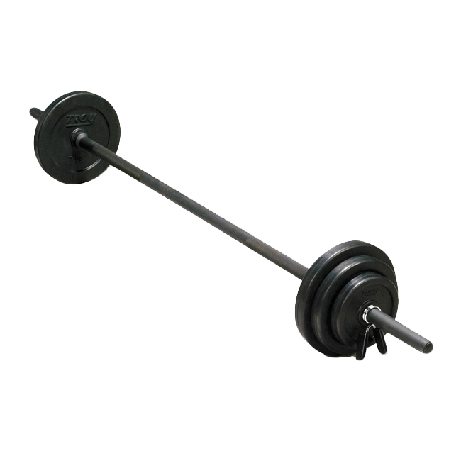 Weight bar set with accessories. Includes (1) 54" hollow straight bar (5 lbs.) and 2 spring collars. Also includes rubber-encased weight plates: (2) 10 lb. weights, (2) 5 lb. weights and (2) 2.5 lb. weights.
