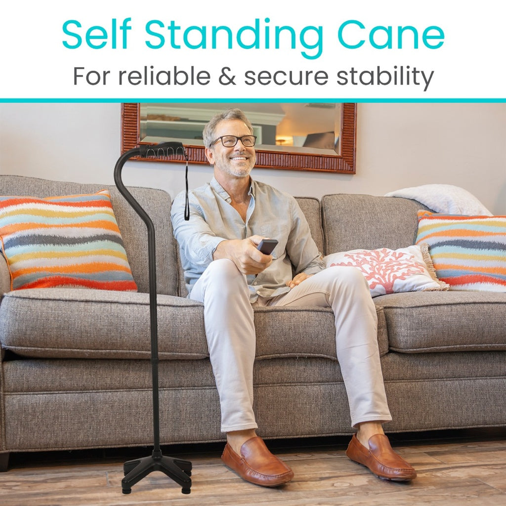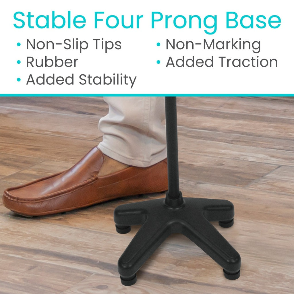 Crafted from heavy-duty aluminum, this quad cane offers both durability and lightweight convenience. It provides dependable support with a four-prong base, allowing it to stand on independently when not in use. With a weight capacity of up to 250 pounds, you can rely on sturdy support.