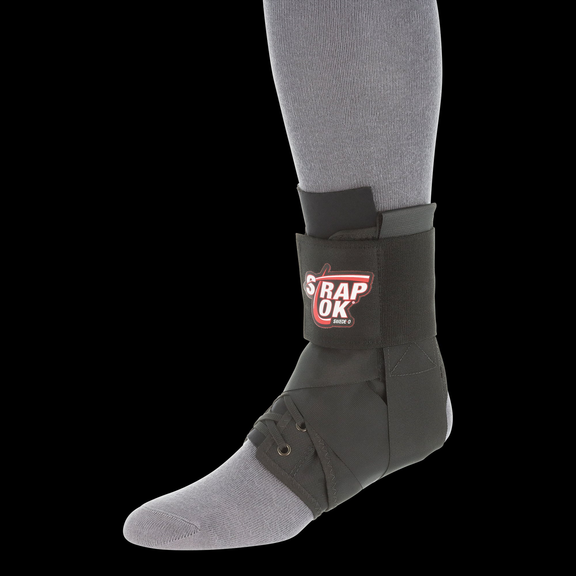 The Swede-O® Strap Lok® ankle brace has external figure eight straps which allow you to easily control and customize the amount of support as well as simulate professional taping. The exclusive dual eyelet lacing system is offset to create a "pulley effect", keeping the brace tighter longer. The top strap covers the laces and locks the figure eight straps in position. The full elastic back is comfortable against the Achilles tendon and helps reduce irritation and the potential for blistering. The breathable tongue helps keep the foot cool and comfortable. The Strap Lok is backed by an industry leading 1 year warranty and constructed from a durable ballistic nylon which is comfortable thin, and lightweight.