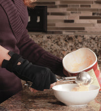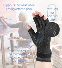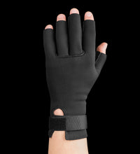 The thermal lining captures and retains your natural body heat to help increase circulation and aid in long lasting pain relief. This form fitting glove provides mild compression to help decrease swelling and pain of the joints. The non-slip, textured palm and fingers with open fingertips are convenient for everyday activities. Specify left or right hand when ordering.
