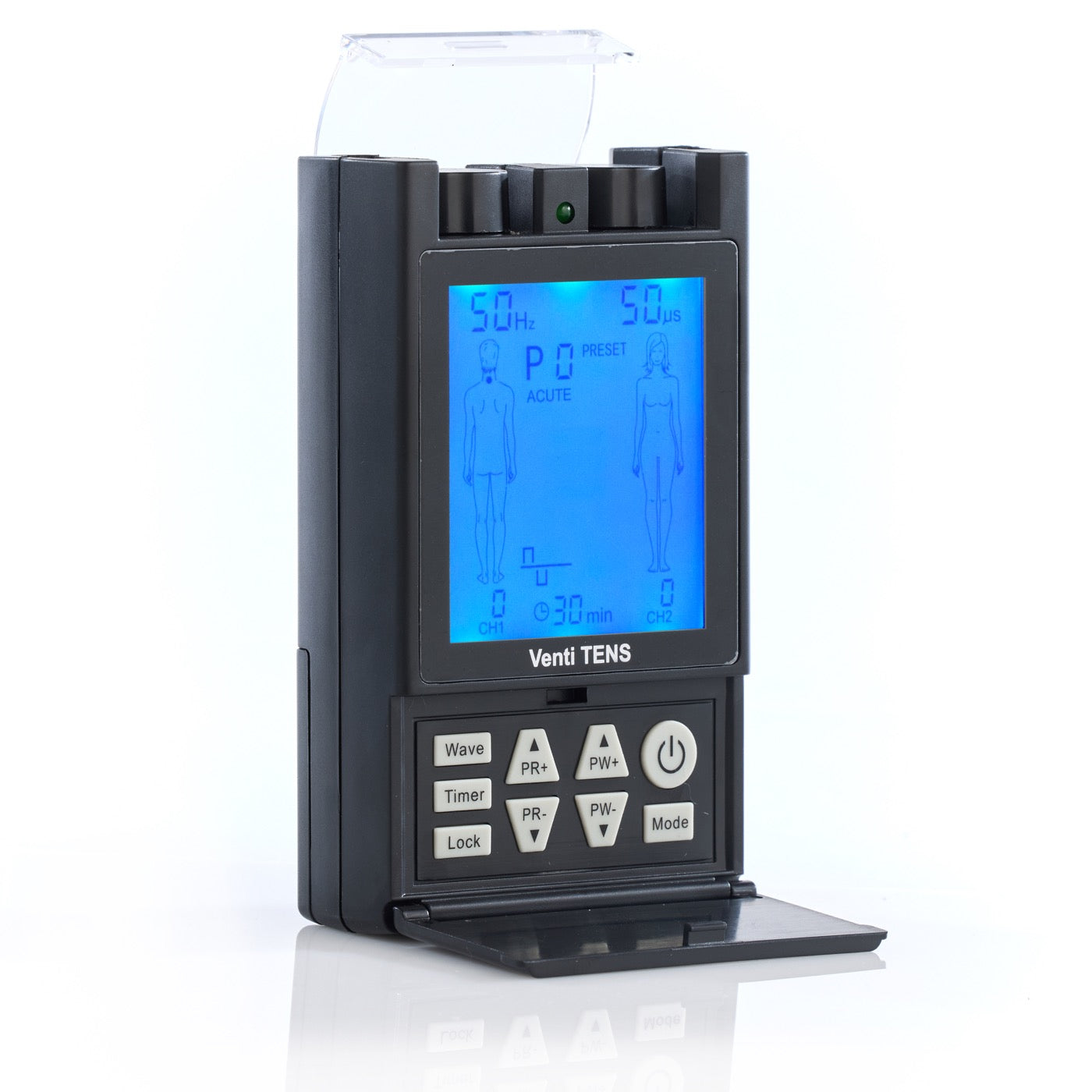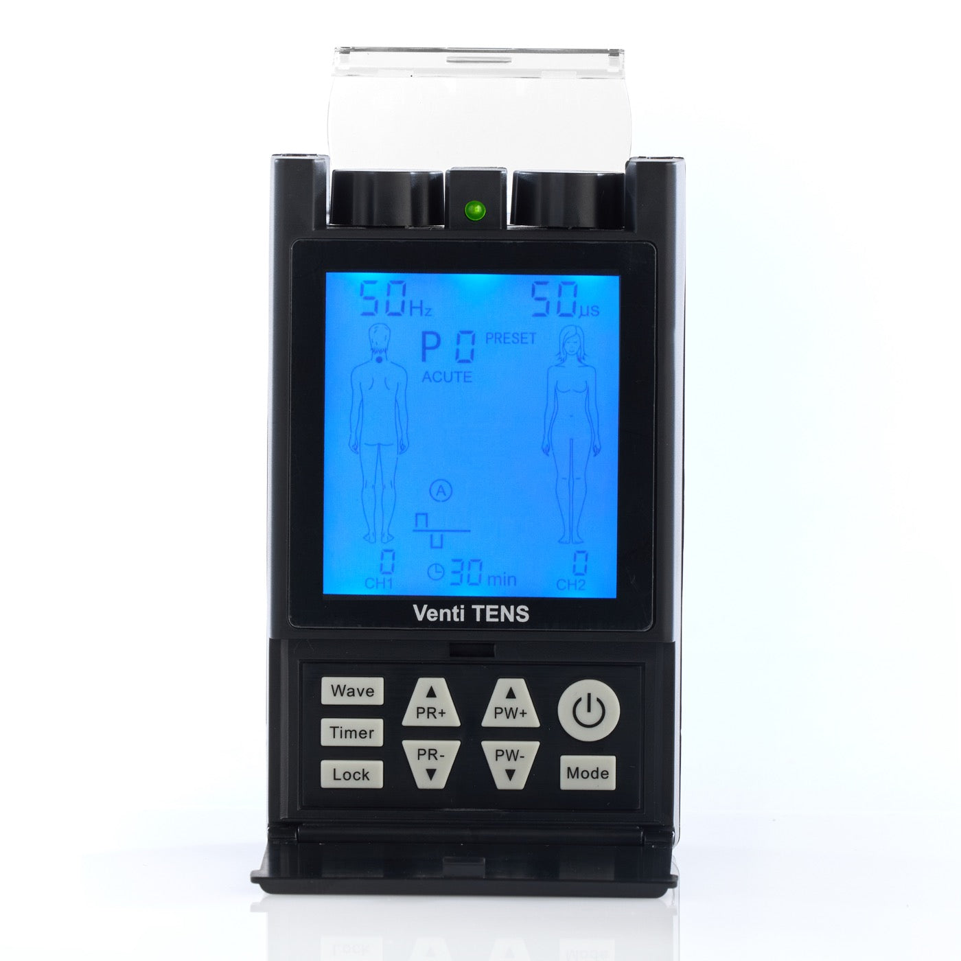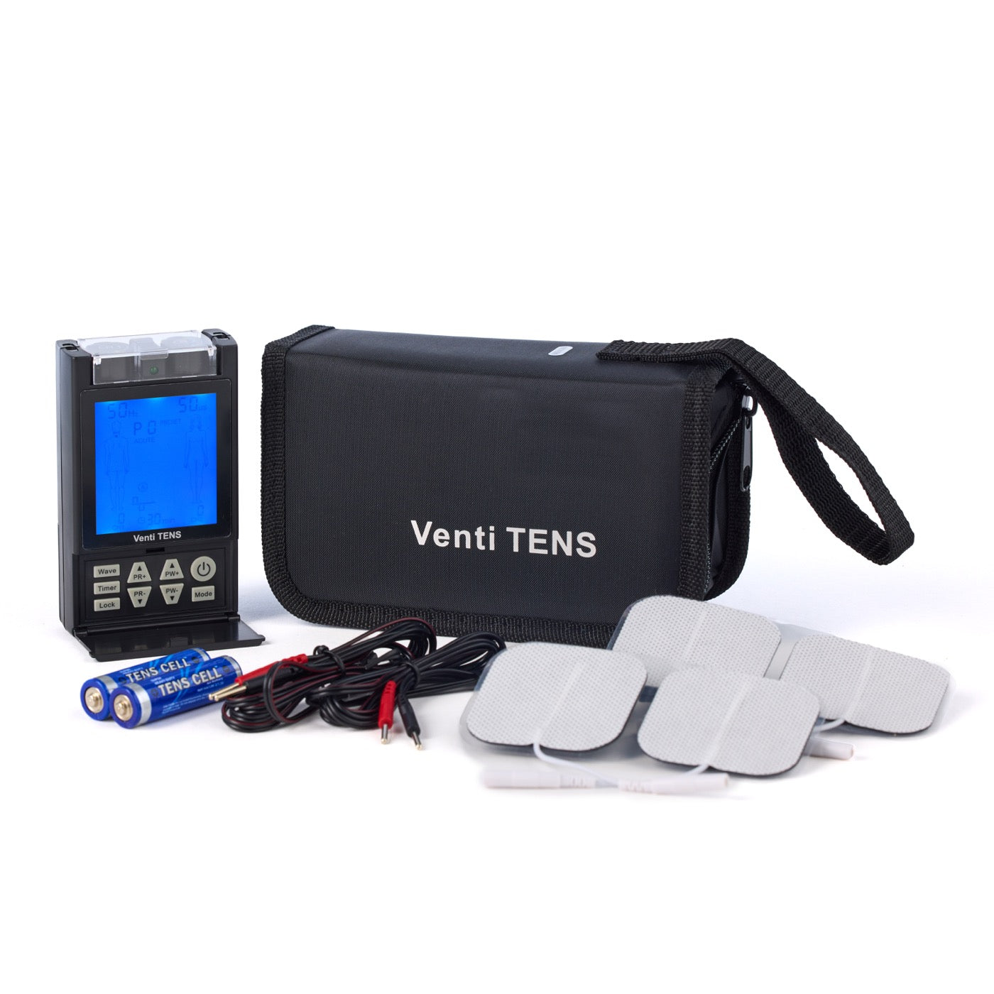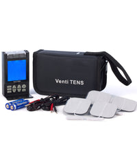 The Venti TENS by Roscoe Medical is a digital TENS device with three waveforms and twenty treatment modes to choose from. This incredibly advance, pocket sized portable device is known for its body part specific settings to help patients with easy set-up and application of each program. The flexibility of the treatment programs (12 presets and 8 manual modes) provides relief for both acute and chronic pain conditions. Dual Channel (4-lead) digital TENS Soft comfortable design with LCD Display 12 preset and 8 manual treatment modes Three waveforms Symmetrical Biphasic Asymmetrical Biphasic Monophasic Body part diagram for targeted pain relief Electrode placement suggestions Convenient zipper carrying case Compliance meter Includes: Digital TENS device, pair of lead wires, 4-pack of self-adhesive InTENSity electrodes, 2 "AA" batteries, manual and carrying case Pulse Width: 50 - 250 µs Pulse Rate: 1 - 150Hz Maximum Output: 130mA (peak value @ 500ohm load)