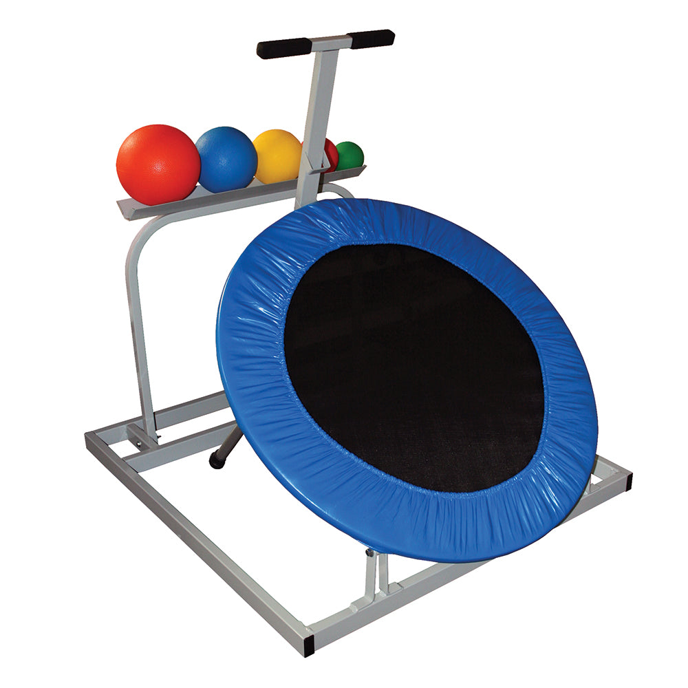 Quick-change rebounders include an easy-reach ball storage rack and a set of 5 weighted medicine balls. Color-coded balls for convenience. Set includes 1.1 lb., 2.2 lb., 4.4 lb., 6.6 lb. and 11 lb. balls. Available in round (47" x 41" x 64") or square (59" x 41" x 45").